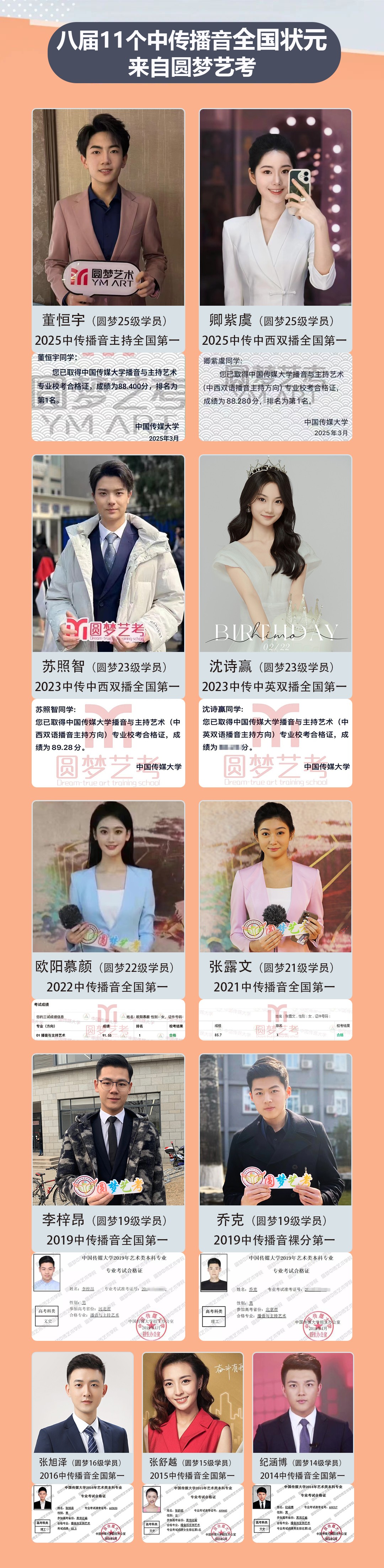 8届11个中传播音全国状元,来自圆梦艺考!